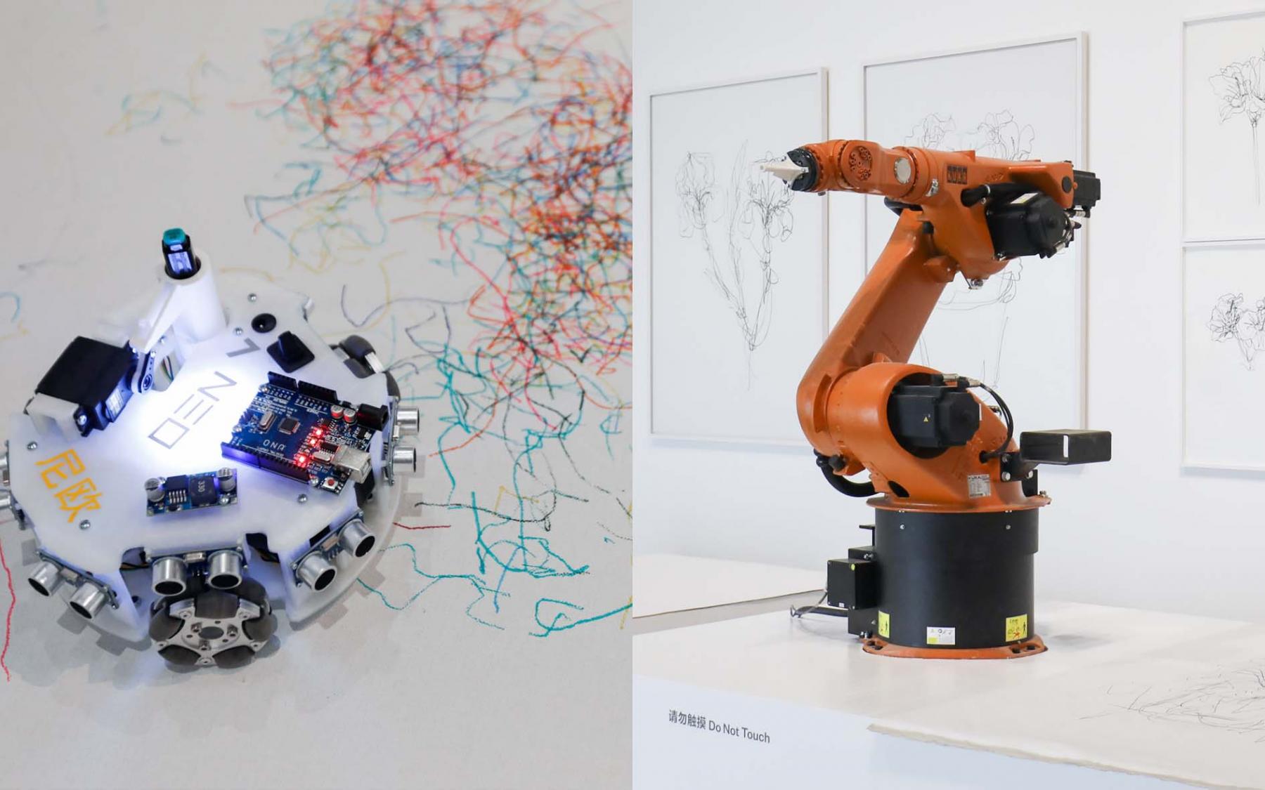 La Fondation Guy & Myriam Ullens présente en exclusivité deux performances artistiques qui intègrent l’intelligence artificielle dans la création artistique. Leonel Moura (Portugal) et Michel Paysant (France), pionniers du Computing art, développent chacun leur propre médium pour créer des imaginaires inédits. Leur atelier devient salle d’exposition, et la fabrication de l’œuvre devient l’œuvre. En 1956, Nicolas Schöffer prédisait un futur où « le rôle de l’artiste sera de créer la création ». Les installations de Leonel Moura et Michel Paysant tendent un miroir de la création artistique, et questionnent le recours à la robotique dans notre monde. Les dernières recherches de ces artistes, soutenus par la Fondation Guy & Myriam Ullens ont été exposés en 2021 au musée UCCA de Beijing, dans le cadre de l’exposition Immaterial/re-material, a brief history of computing art.