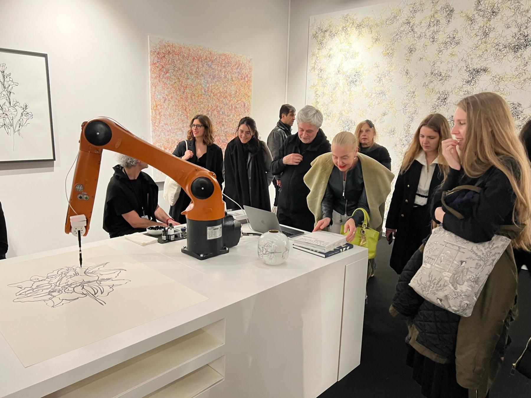 La Fondation Guy & Myriam Ullens présente en exclusivité deux performances artistiques qui intègrent l’intelligence artificielle dans la création artistique. Leonel Moura (Portugal) et Michel Paysant (France), pionniers du Computing art, développent chacun leur propre médium pour créer des imaginaires inédits. Leur atelier devient salle d’exposition, et la fabrication de l’œuvre devient l’œuvre. En 1956, Nicolas Schöffer prédisait un futur où « le rôle de l’artiste sera de créer la création ». Les installations de Leonel Moura et Michel Paysant tendent un miroir de la création artistique, et questionnent le recours à la robotique dans notre monde. Les dernières recherches de ces artistes, soutenus par la Fondation Guy & Myriam Ullens ont été exposés en 2021 au musée UCCA de Beijing, dans le cadre de l’exposition Immaterial/re-material, a brief history of computing art.