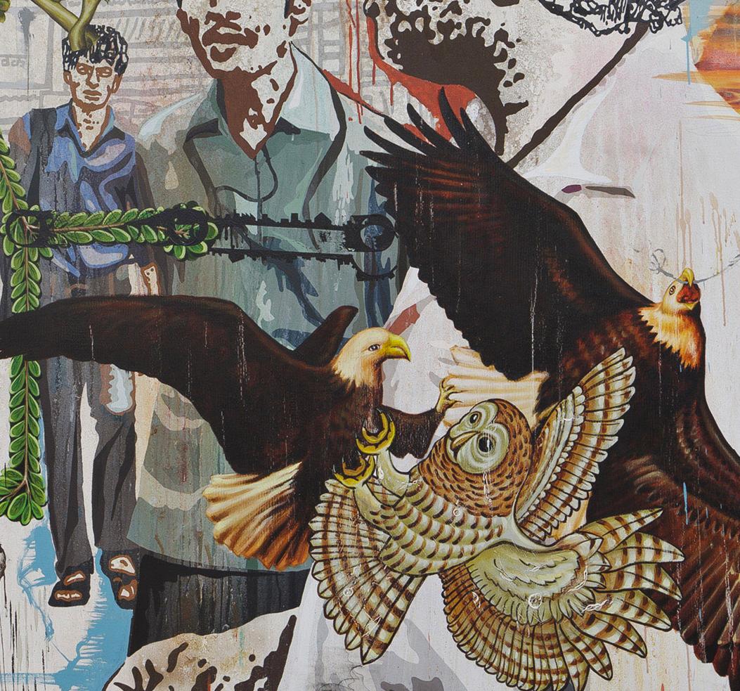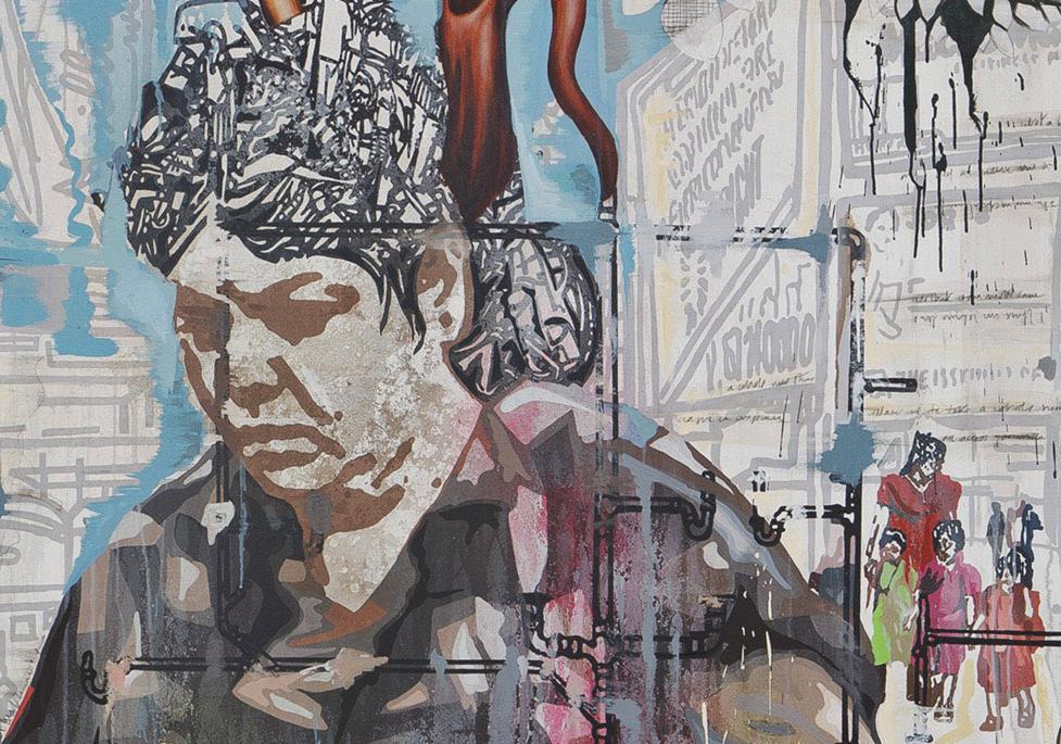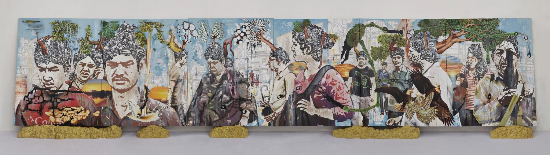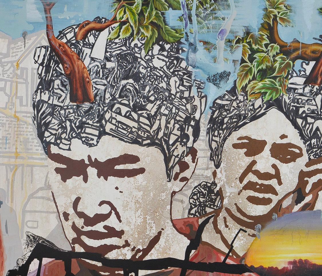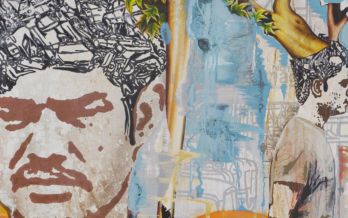 Huile, acrylique, gloss ménager et crayon sur toile, plâtre dentaire
