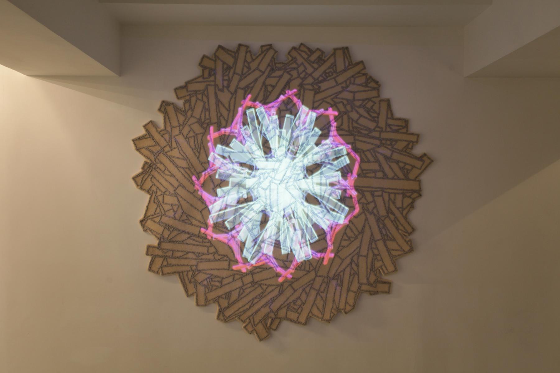 Oeuvre unique de réalité virtuelle - vidéo 30 min, projetée sur une tapisserie en laine et soie.