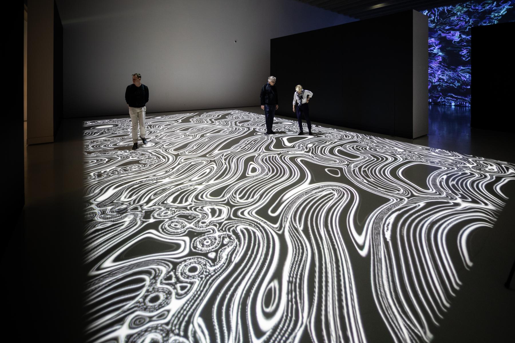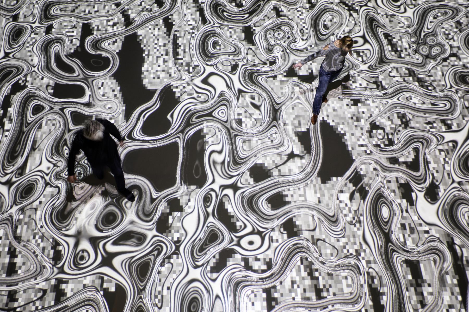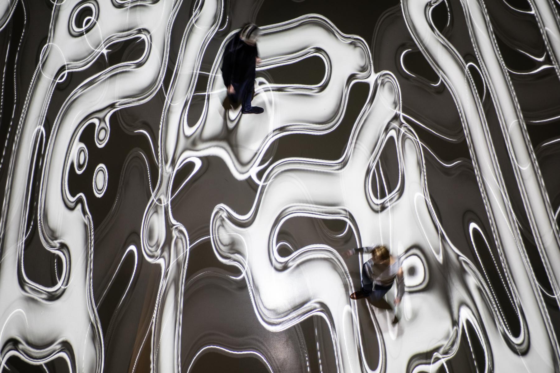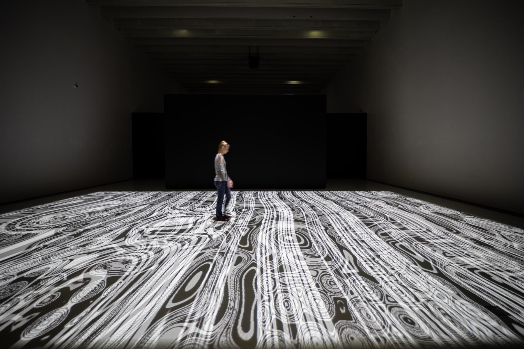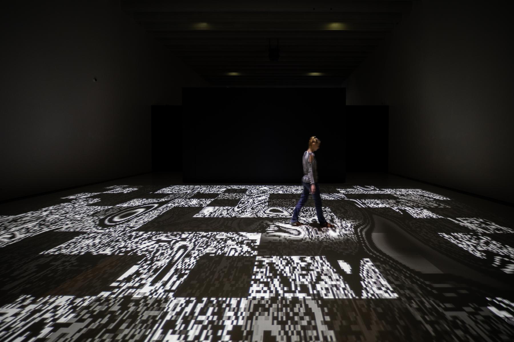 Installation unique de réalité virtuelle générative et interactive (version noir et blanc exposée au Musée Soulages)