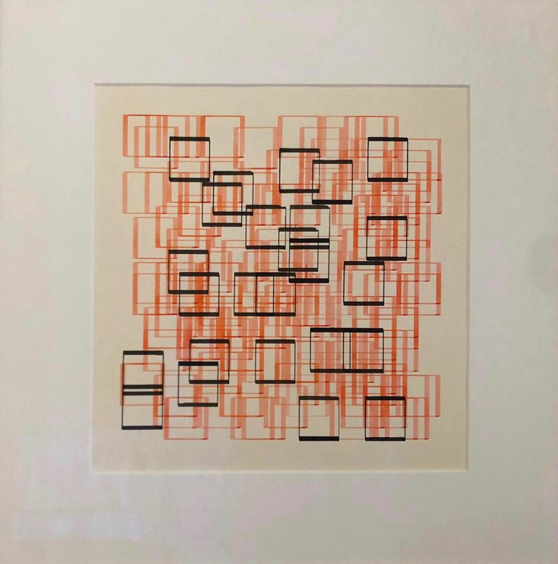 1 dessin de traceur, encre sur papier, cadre en bois, montage sans acide